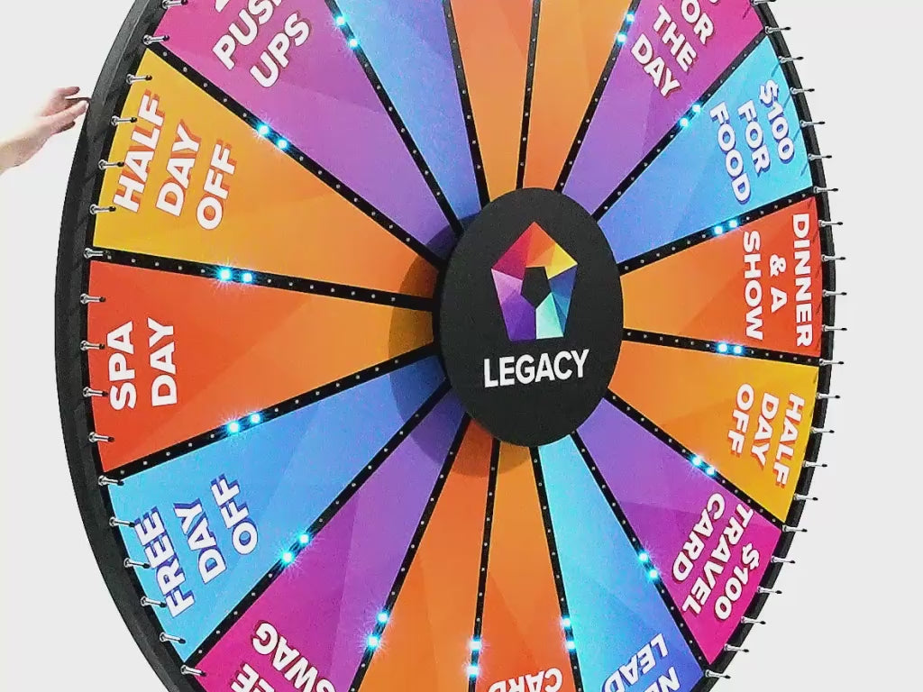 Yes. Our prize wheels and Plinko games can be fully customized with your logo, brand colors, prize sections, and LED lighting. We offer ten wheel sizes from 18" to 96", plus tabletop, floor-standing, and wall-mount options. Our design team works with you one-on-one at no extra charge.