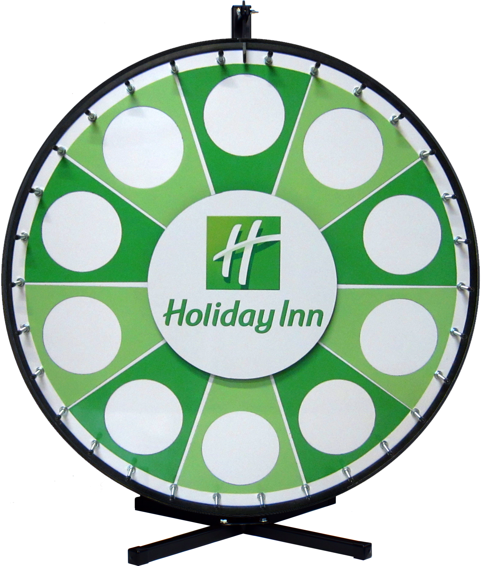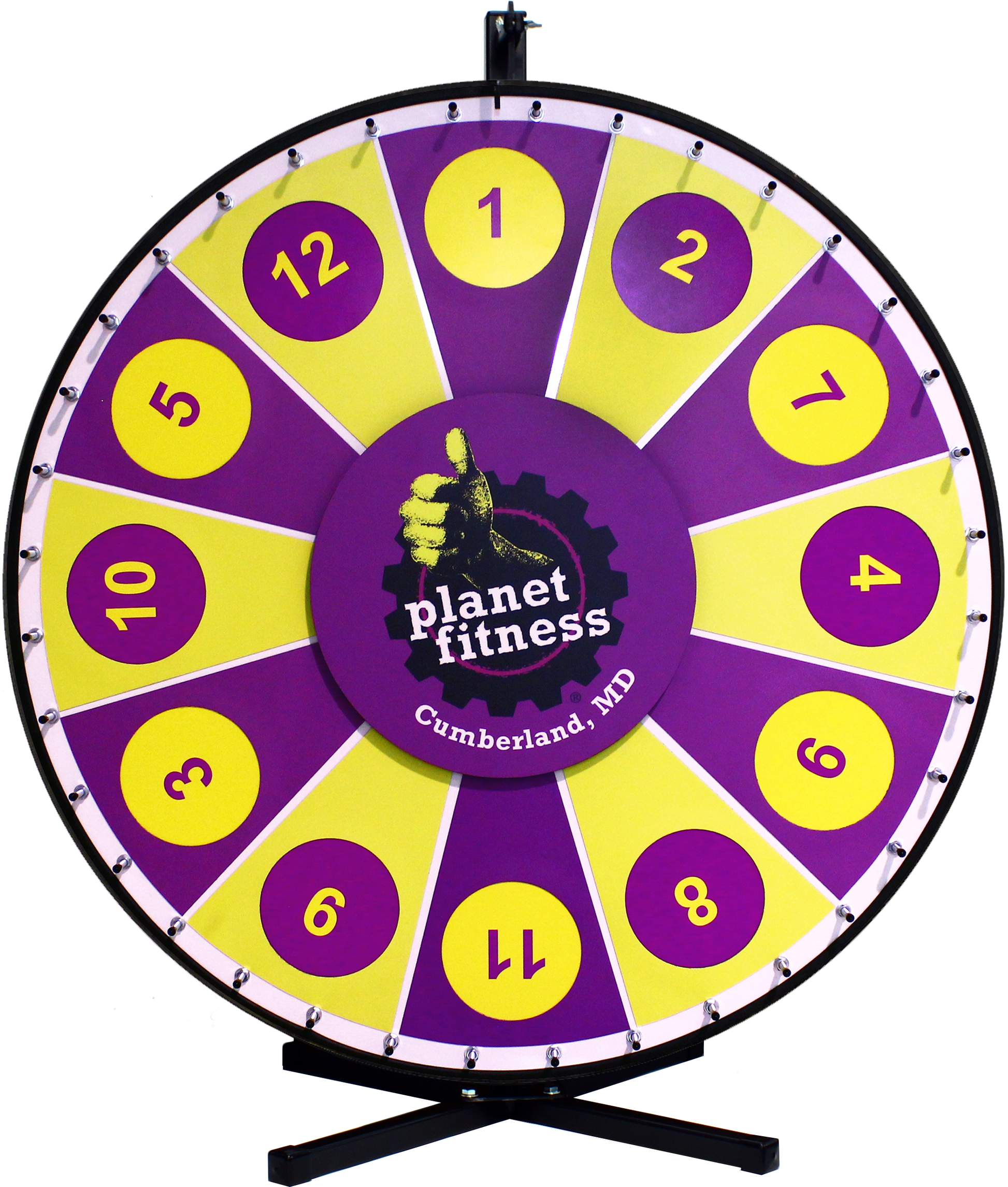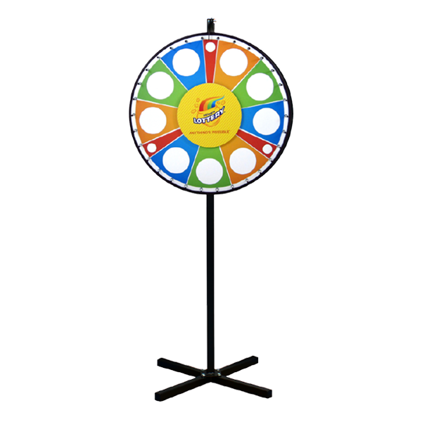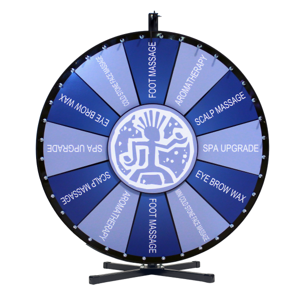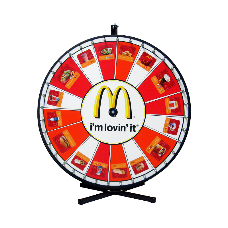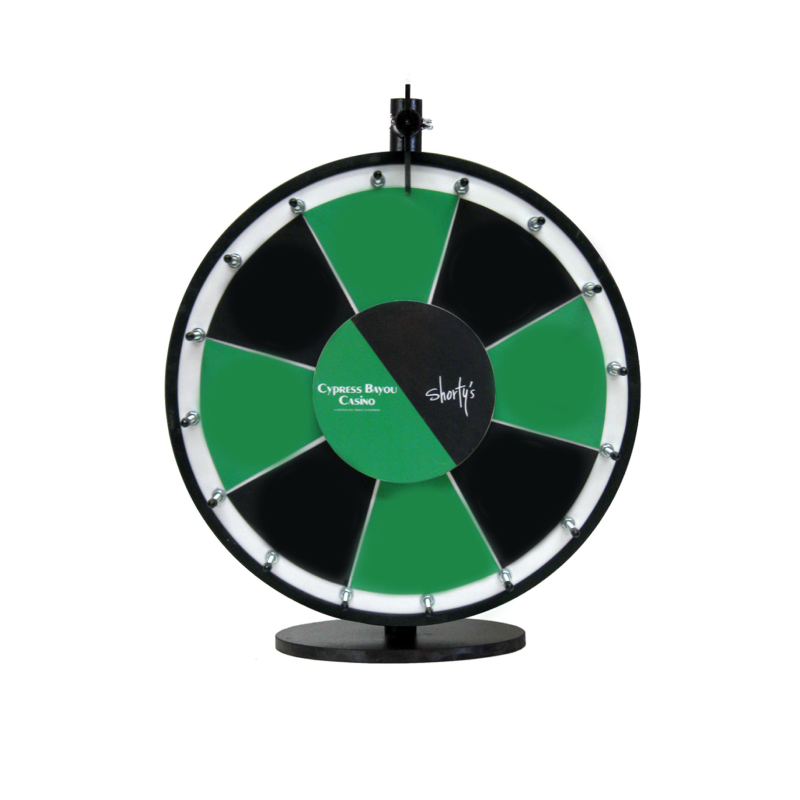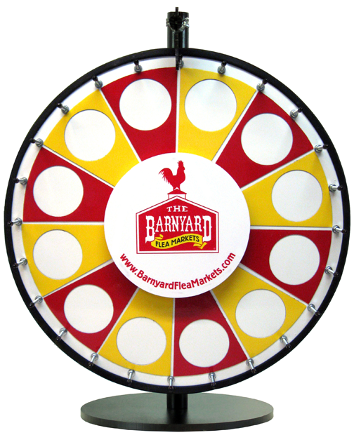 Custom Magnetic Wheel lets you swap prizes quickly for repeated use. The wheel surface contains a steel backing, and the prize sections are made with magnetic material. Order additional sections for more variety or as a backup, or select the “Insert Your Own Prize” section to design, print, and insert your own prizes.