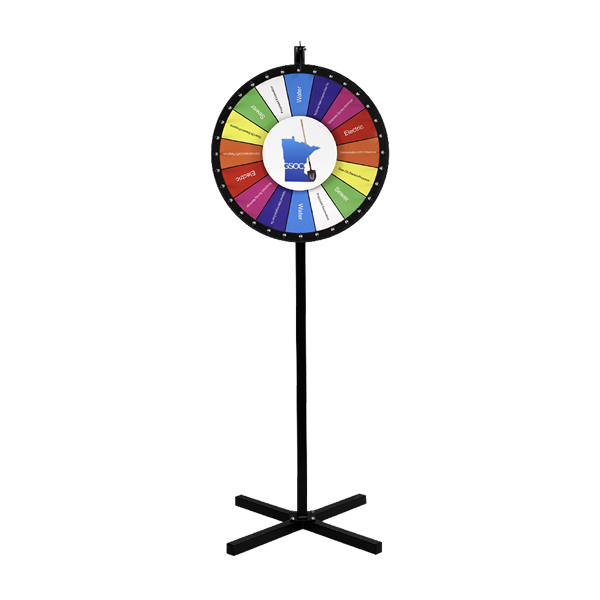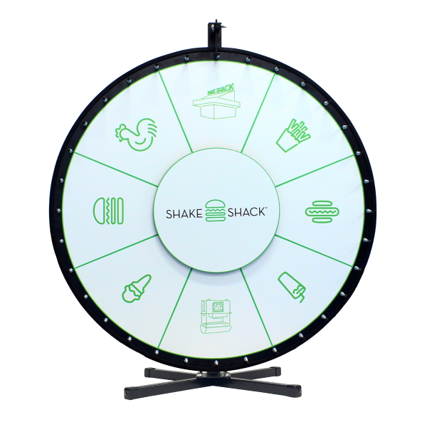 The design is printed on high-quality vinyl and applied directly to the wheel surface, ensuring a smooth finish with bold, high-definition graphics. Our expert graphics team works with you one-on-one to create a prize wheel that perfectly reflects your brand and engages your audience. Upgrade the prize section to a dry-erase surface to easily change or update prizes. Every prize wheel includes your custom logo in the center.