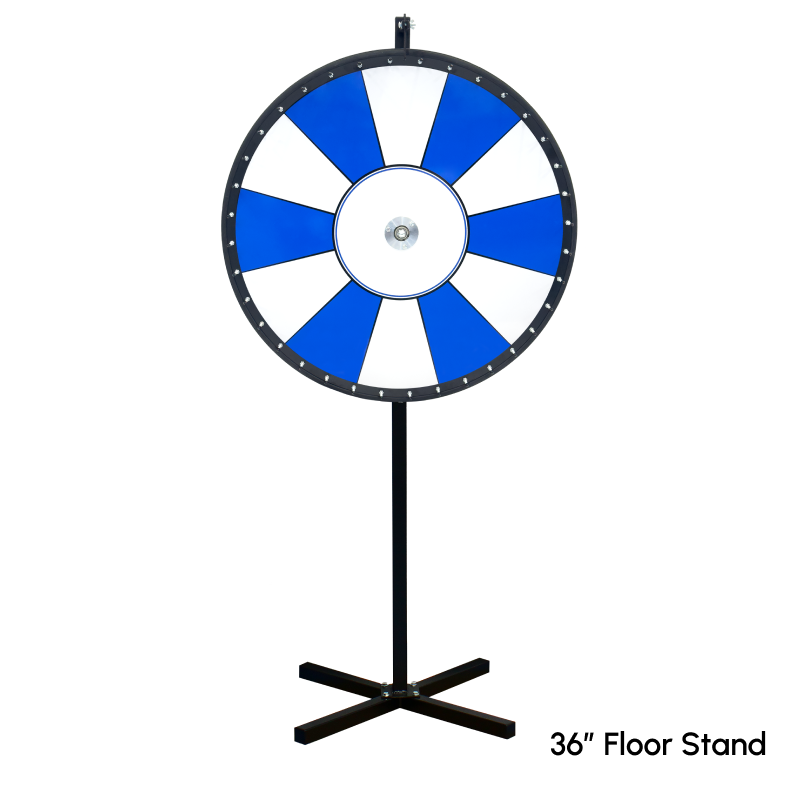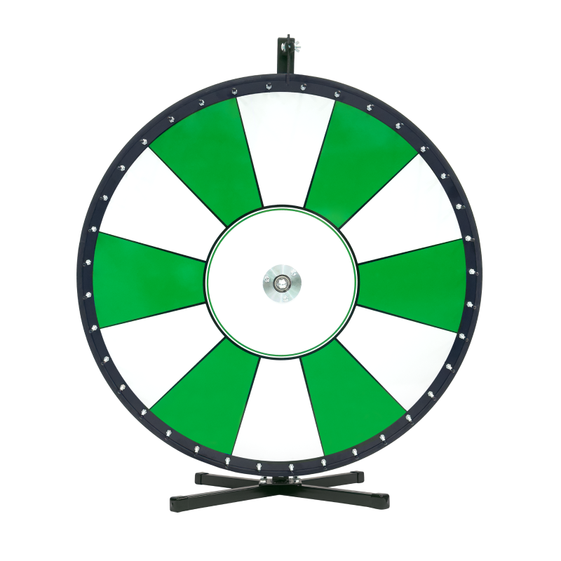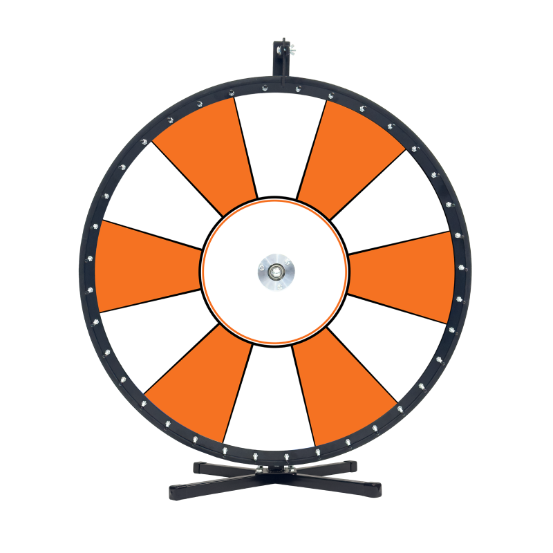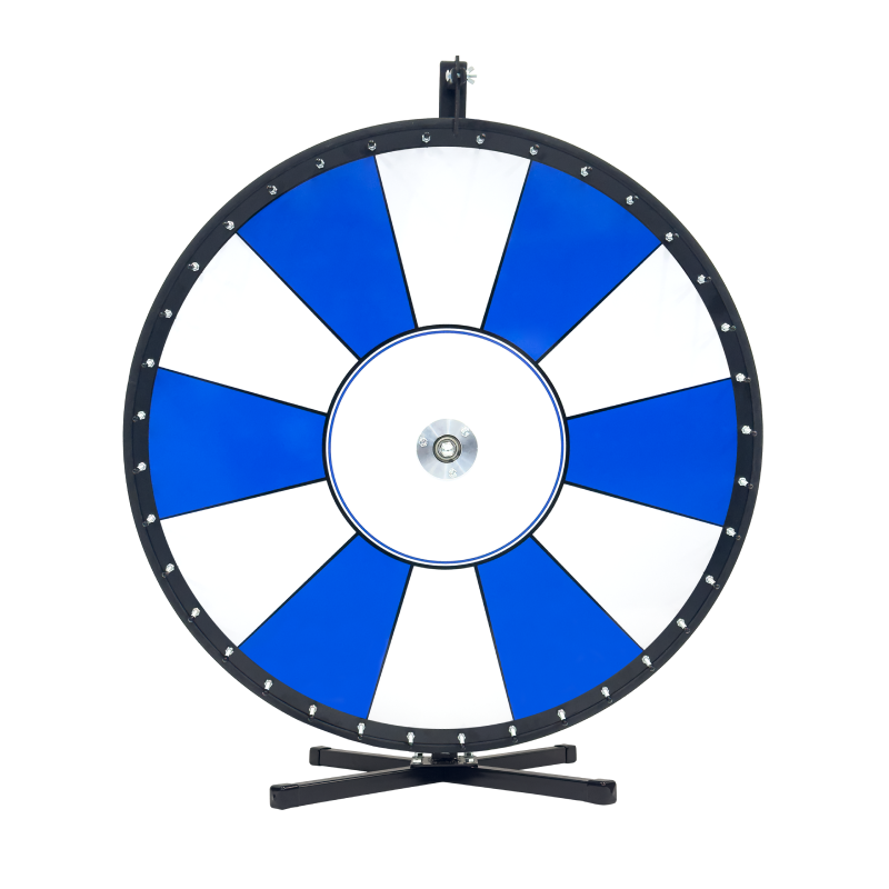 This wheel features a dry-erase prize sections printed on high-quality vinyl and applied directly for a smooth finish and bold, high-definition graphics. Add “Custom Logo” and upload your logo (300dpi and above), and we’ll create a durable, high-quality PVC center-mount logo for your wheel.