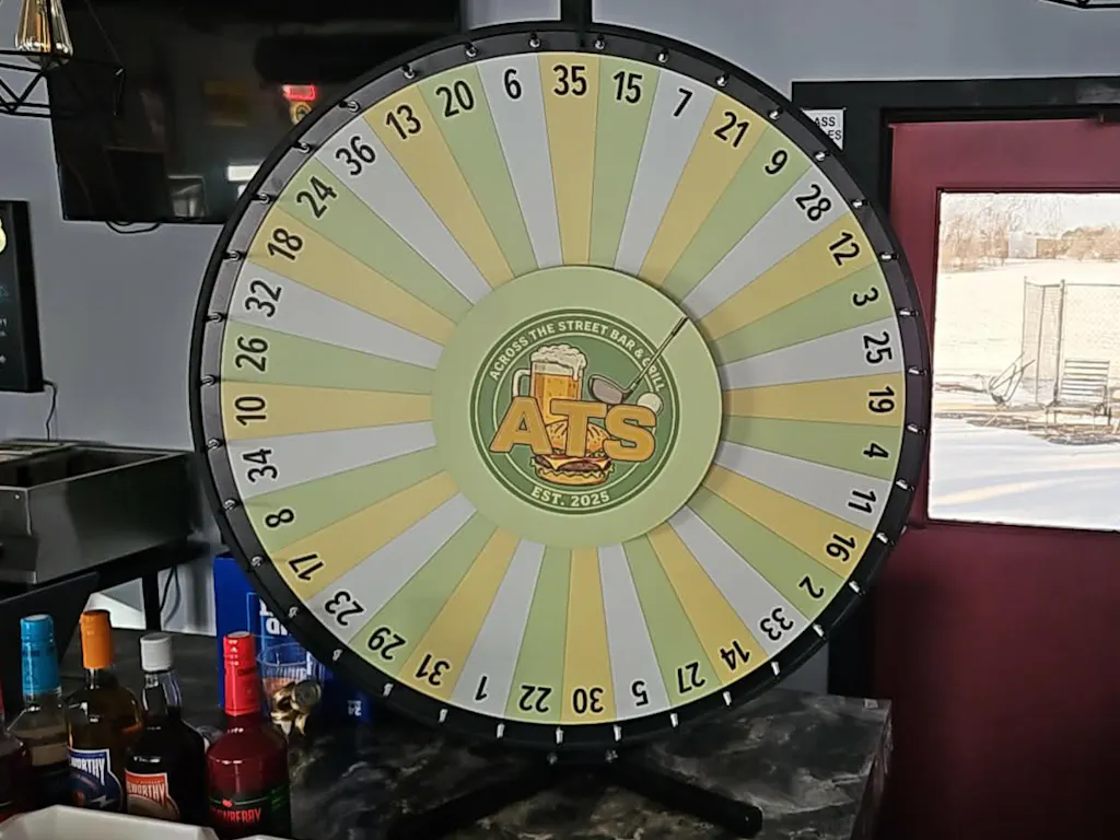This custom-branded tabletop prize wheel ensures your display stands out at trade shows, promotional events, bars, restaurants, retail spaces, and more. Compact enough for any counter or table, built for durability, and designed to impress.